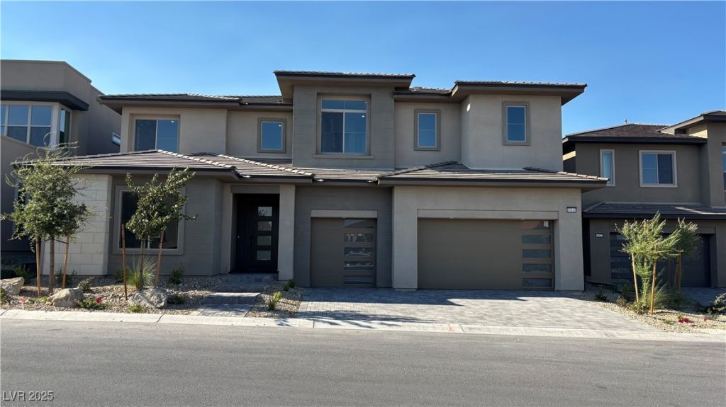 BRAND NEW CONSTRUCTION ASCENSION CAPROCK, Welcome to this magnificent, fully furnished new home at the newest, upsacale guard-gated neighborhood in Summerlin. With more than $600K in high-end enhancements, every element has been carefully chosen to improve your quality of life while fusing comfort and sophisticated contemporary design! Step inside to see a large, open-concept layout w/ high ceilings. Clalcatta divine beautiful countertops with water fall edges, a full-height backsplash, a large wet bar island with wall fall edges & built in refrigerator, premium SKS Pro stainless steel appliances, & a walk-in pantry are all features of the gourmet kitchen. Prep kitchen with sink and dishwasher. A separate casual café allow for easy entertaining. The great room features a four-panel sliding glass door that seamlessly integrates indoor and outdoor living spaces. Floating stairs lead to the massive gaming area, which is ideal for family movie nights or entertaining on the private terrace