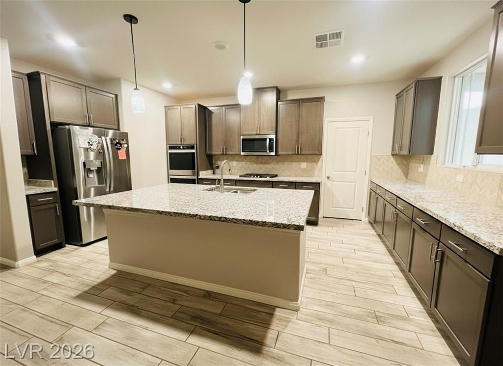 Gated community Located within the Valley Vista Master Plan. This spacious and beautifully upgraded 4 Bed 3 Bath plus Loft and 3 car garage, features an open and inviting kitchen with granite counters, walk in pantry, large island w sink and dishwasher. All stainless appliances, including built in double ovens, refrigerator, washer & dryer. Downstairs Bedroom and bath, RO system, water softener. Expansive tile flooring throughout the entire first level. Large loft upstairs along with three ample secondary bedroom. On the other side of the loft sits the Primary Bedroom and spacious primary bath and double vanities, oversized shower and enormous walk in closet. Backyard features covered patio, and turf for maintenance free living. Great location near parks, dining and more.